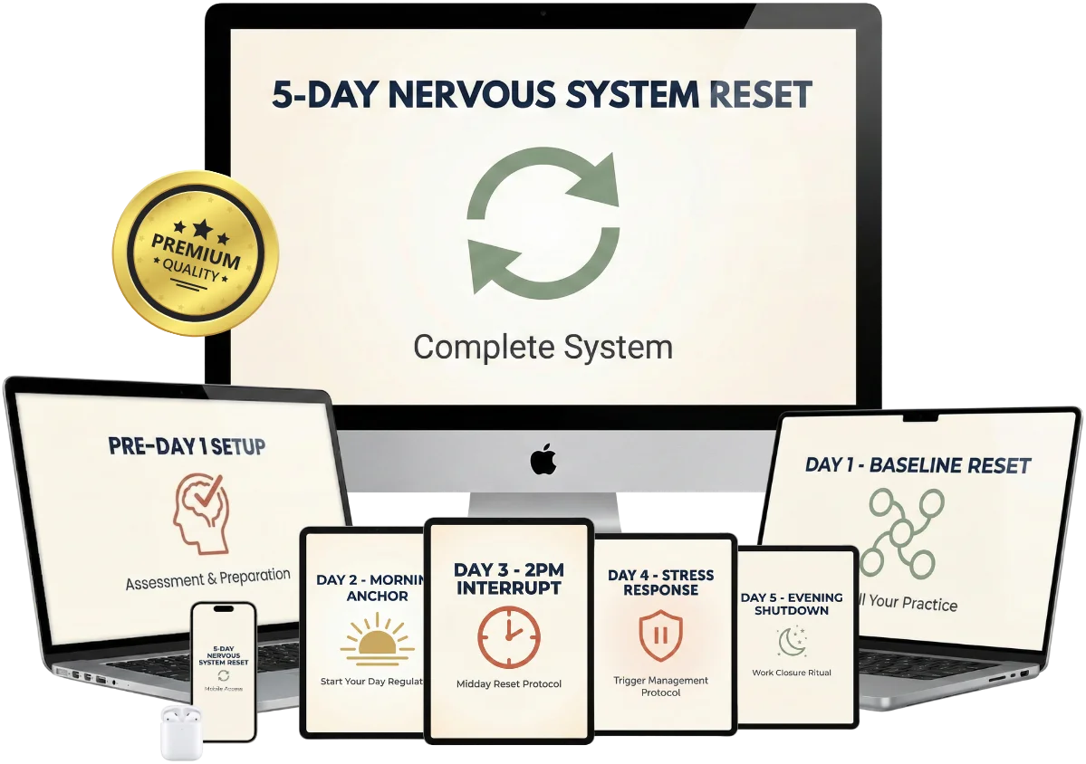 👉 Day 1: Baseline Reset Practice installs one 5-minute protocol you'll use all week (no apps, no complicated steps)