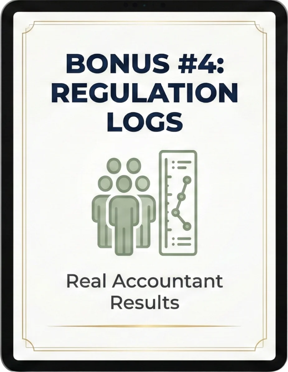 Real Accountant Regulation Logs (Bonus #4) shows you how five accountants used these practices during 70+ hour weeks – you'll see their exact schedules and what worked when time was tight.