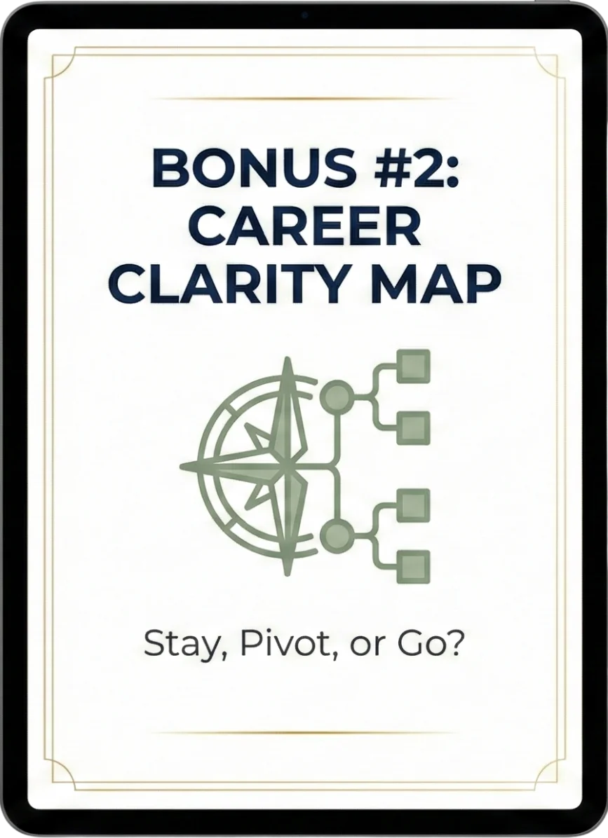 Includes interactive workbook, decision tree flowchart, and clarity prompts that help you decide whether to stay in your current role with new boundaries, pivot to a different company, or pursue an entrepreneurial leap.