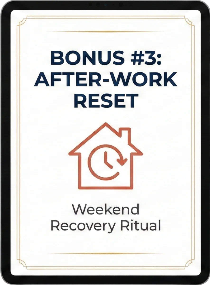 Part 1: The 5-minute After-Work Reset shifts you from work mode to home mode so you stop being snappy when you walk in the door and actually decompress.