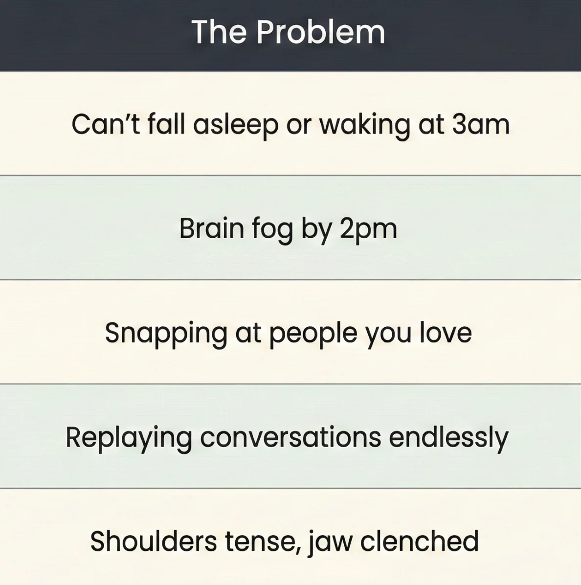 Do you wake up already exhausted, lie awake at 3am replaying work conversations, and snap at your partner the second you walk through the door?