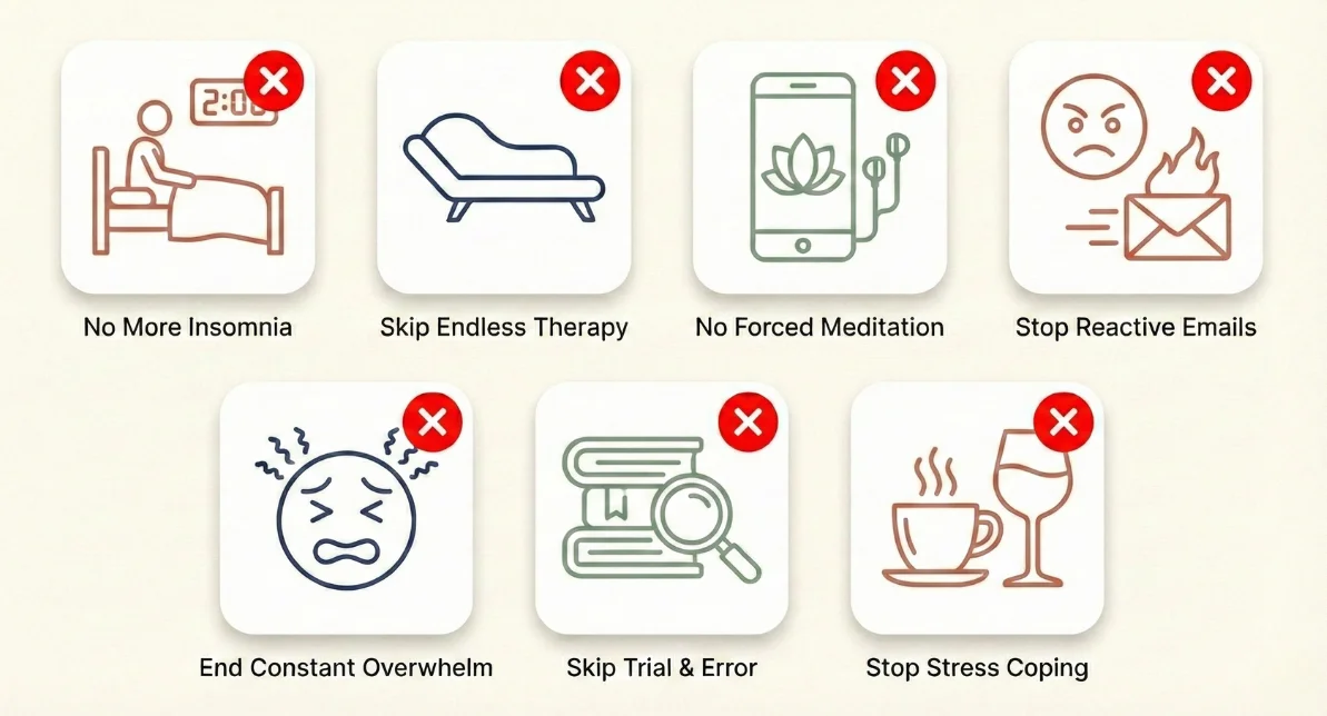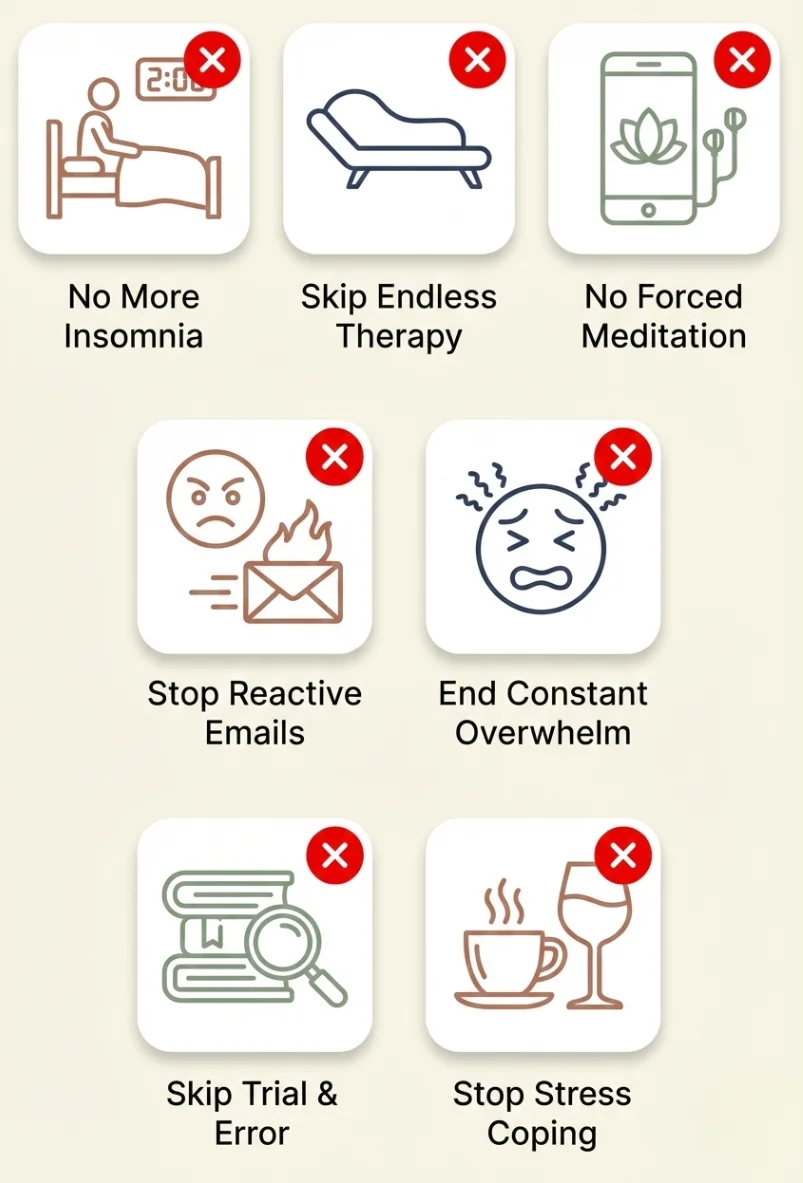 ❌ Spend 6-12 months in weekly therapy at $200/session learning WHY you're stressed (but your body still won't shut off)