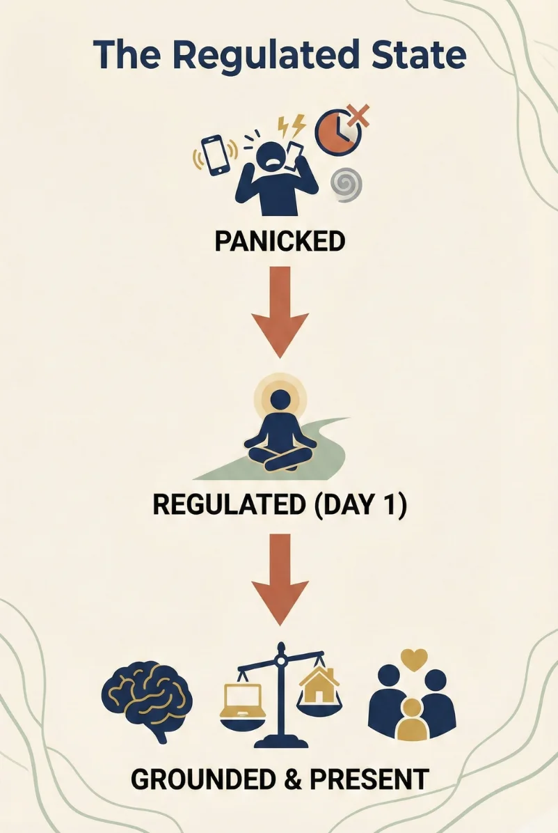 This isn't another course teaching you theory. This is a daily implementation system that does the regulation work FOR you.